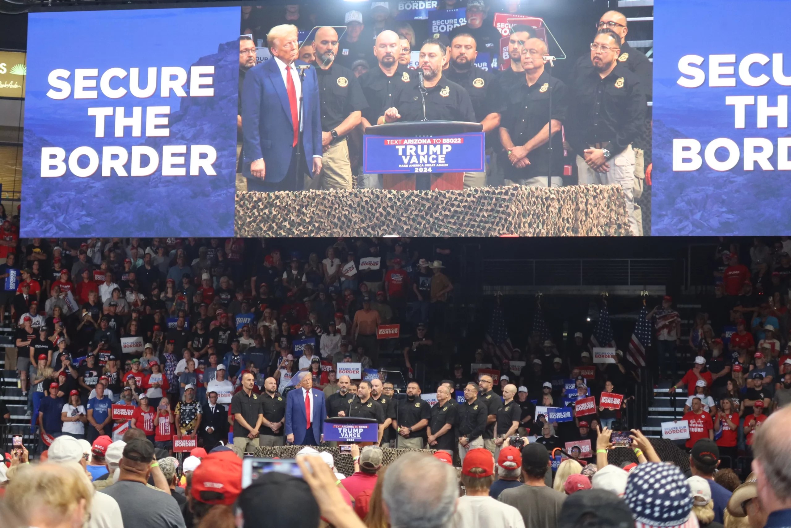 At an Oct. 13 rally, Trump and his surrogates intensified their attacks on Vice President Kamala Harris and the Biden administration’s handling of the border. People at the rally in the Republican stronghold of Yavapai County waved signs demanding, “Secure our border.”