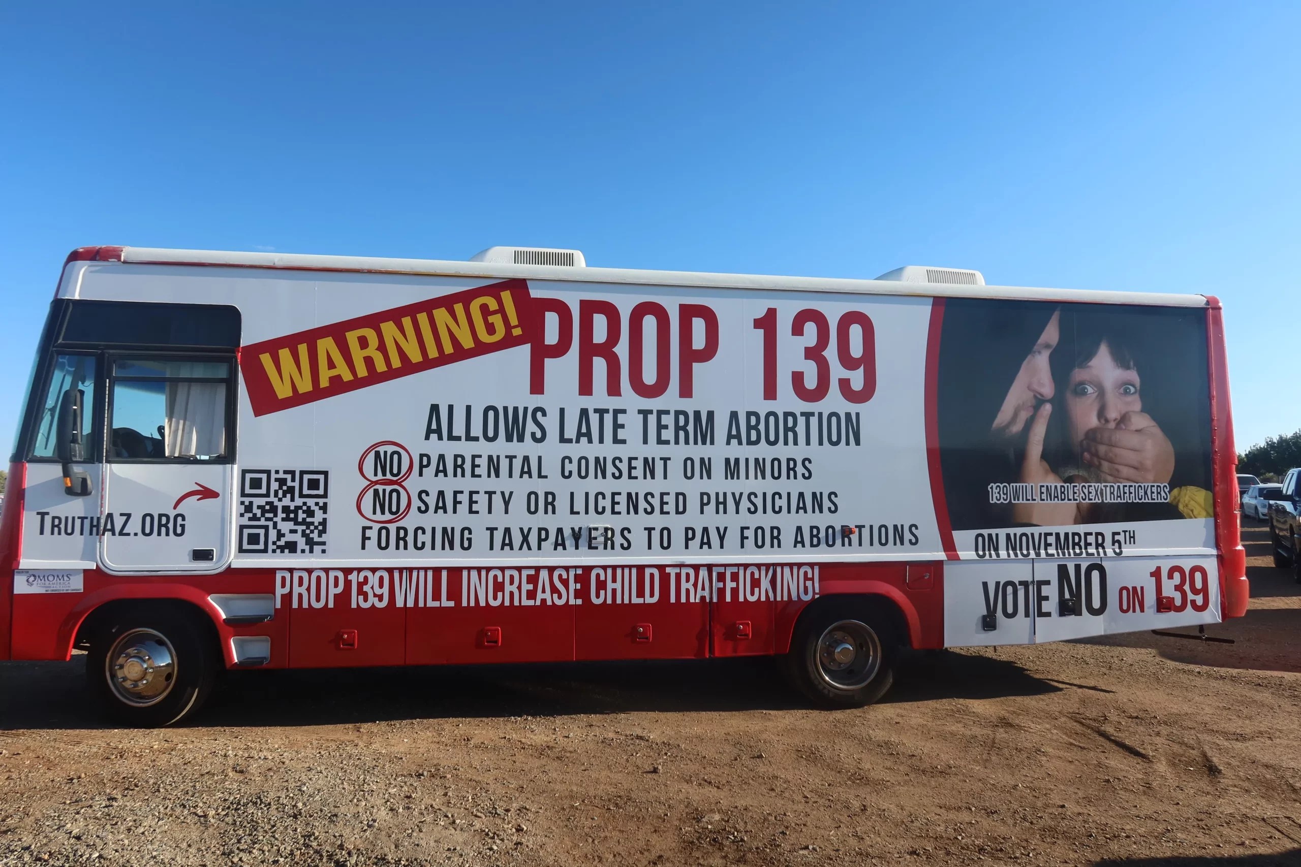 Throughout the week, a large RV with a warning to vote “no” on Proposition 139 has been parked at campaign events across the state.