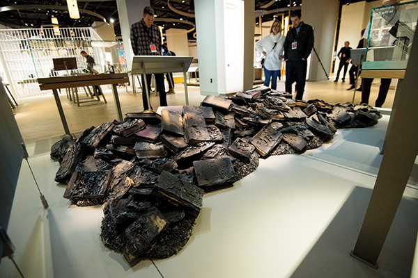 The Bible is the ‘most-burned book of all time,’ according to the president of the new museum. Among the exhibits is this pile of burned Bibles. (Credit: Bill Clark, CQ Roll Call / Getty)