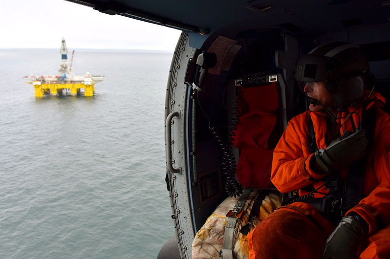 But once they do, then the Noble Discoverer will start drilling at another site, about nine miles away from where the Polar Pioneer is. But there’s a regulatory regime that prohibits the two ships from drilling within 15 miles of one another, so you’ve got two big drilling units up there, lots of folks, they’re on there for 28 days. Every 28 days, a new crew comes out, so you’ve got helicopters, a lot of human activity going back and forth. At the same time, you’ve got the north slope burrow and the indigenous tribes that live up there, they live off the water.