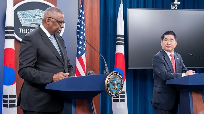During his talks with Austin at the Pentagon, South Korean Defense Minister Kim Yong-Hyun downplayed any risk of imminent war with North Korea. Still, he voiced Seoul’s biggest fear — that Russia will help North Korea upgrade its nascent nuclear arsenal.