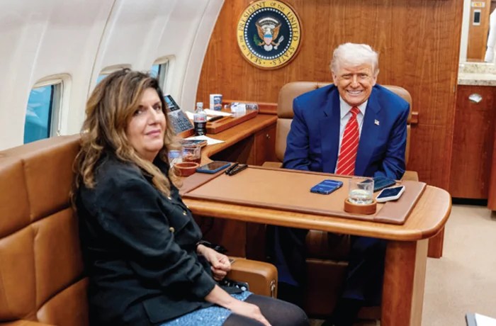 Just a few moments after Air Force One took off from Andrews Air Force Base in Maryland, President Donald Trump sat at his desk aboard the plane with a handful of his trusted staff members, including White House press secretary Karoline Leavitt and Treasury Secretary Scott Bessent.