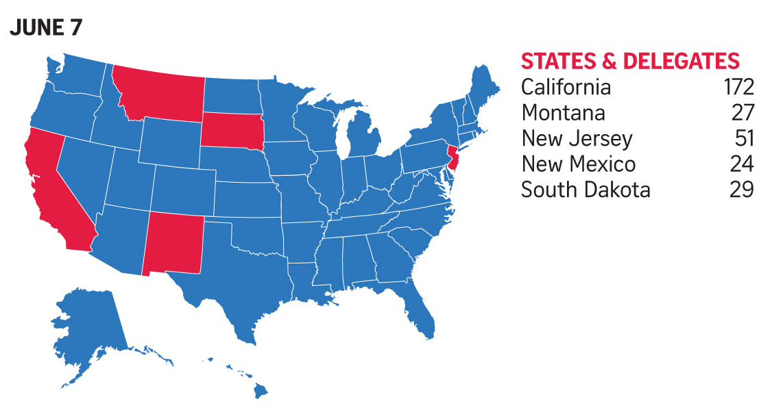 California primary: 172 delegates, winner-take-all statewide (for just 10 delegates) and by congressional district