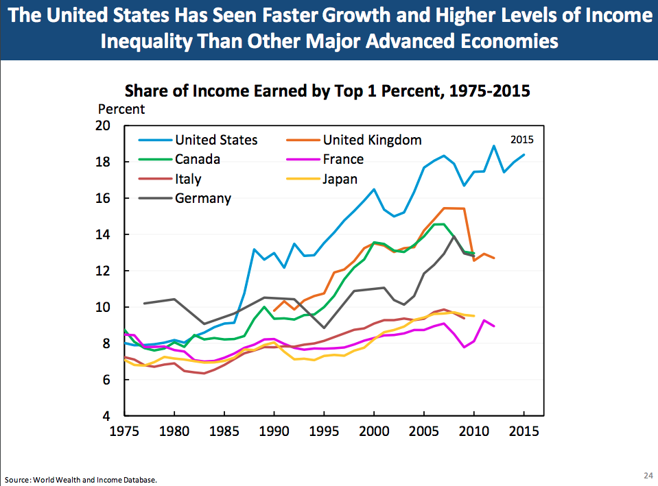 Furman said the U.S. has continued to see “faster growth and higher levels of income inequality” in the last several years, especially compared to other advanced economies.