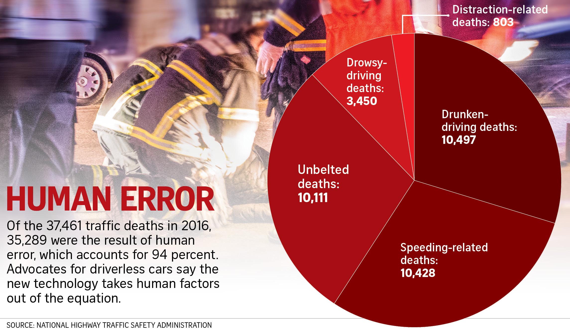 According to the National Highway Traffic Safety Administration, 37,461 people died on U.S. roads in 2016. Ninety-four percent of car accidents were attributed to human error.