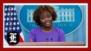She strutted onto the White House press room set to cheers, stating, “First of all I’d like to announce that I’m calm now. And I will remain calm now as long as you sons of —” before she interrupted herself and sought to reach cool down with a giant “slice” of gum.