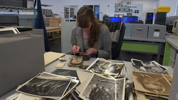 In another scene from ‘Ex Libris,’ a worker at the NYPL’s library services center files old photographs. (Zipporah Films)