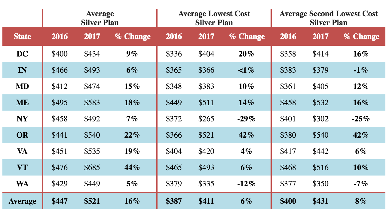 “As in years past, proposed premium increases vary dramatically by state and by region within states,” said Elizabeth Carpenter, senior vice president at Avalere. “In most states, premiums for the lowest cost plans appear to be rising less than for the silver metal level as a whole.”