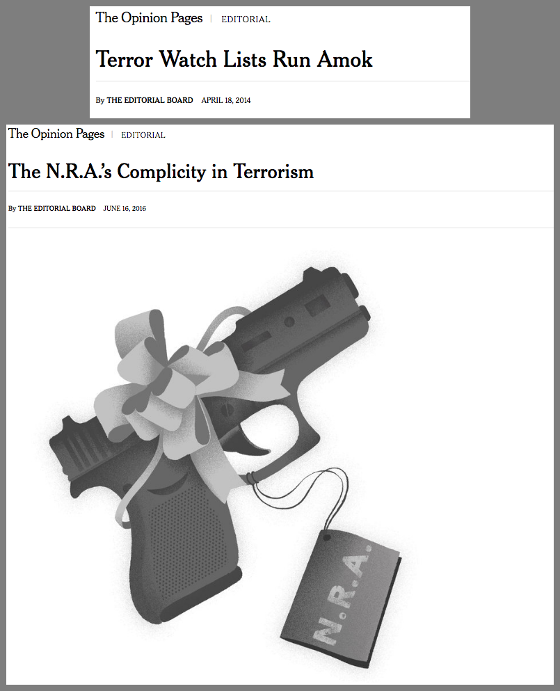 Fast-forward a couple of years, and the Times’ tone on the government lists compiled using the terror database has changed considerably.