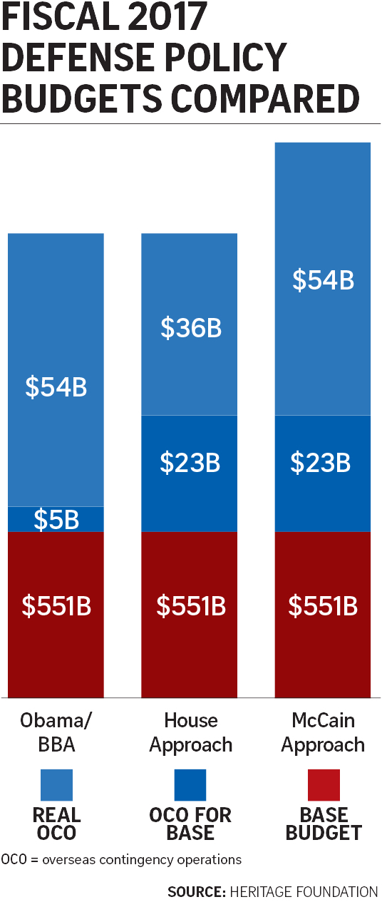 Sen. John McCain’s amendment to boost defense spending in fiscal 2017 by about $18 billion would fund more aircraft and ships not included in the president’s budget request, but that the services say they need.