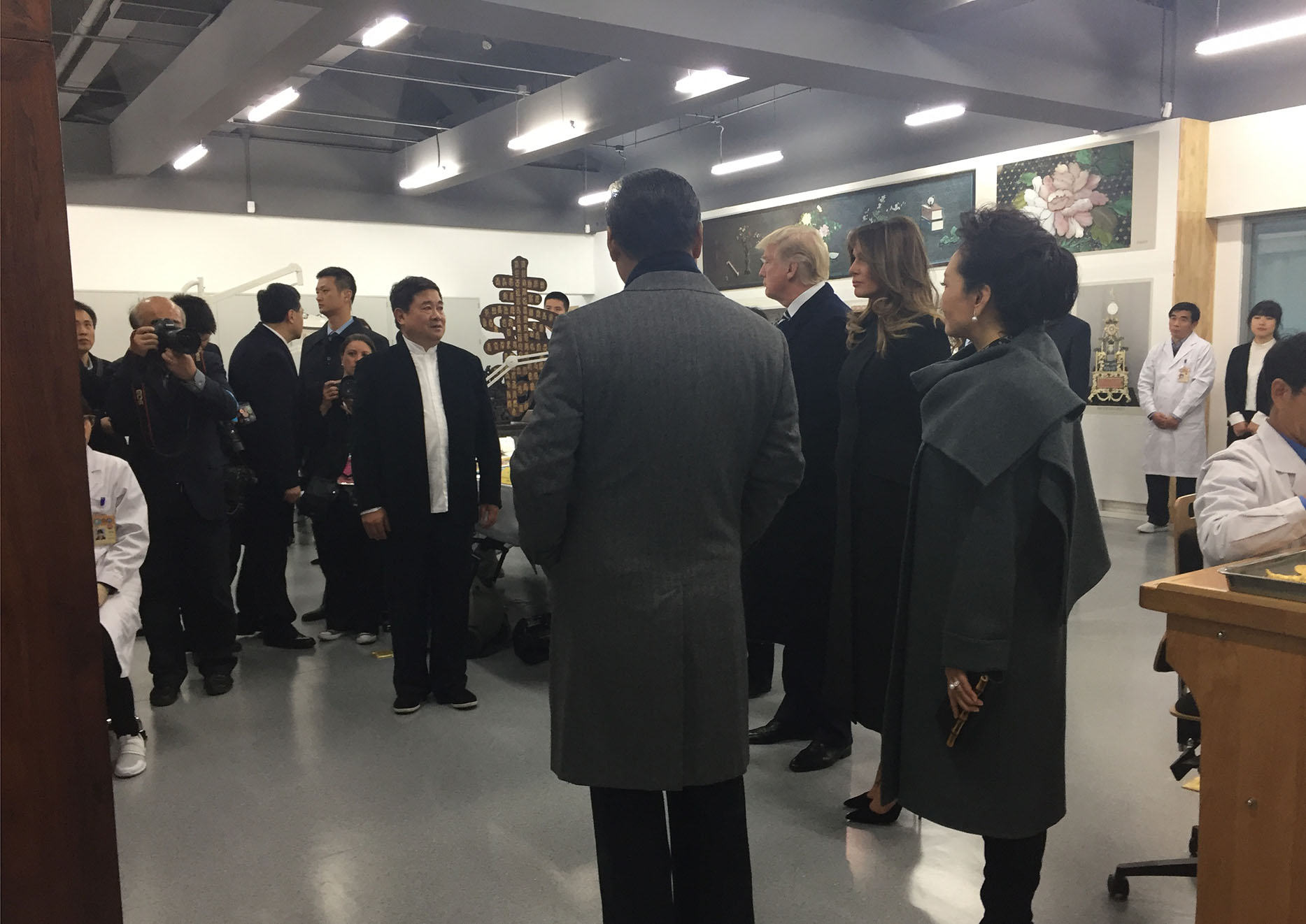 Xi and his wife, Madam Peng, showed the Trumps, White House senior adviser Jared Kushner, State Secretary Rex Tillerson, national security adviser H.R. McMaster, White House press secretary Sarah Sanders, and U.S. Ambassador to China Terry Branstad the palace-turned-museum in two separate tours, the Conservation Scientific Laboratory.
