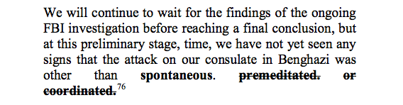 On Sept. 17, the State Department’s Near Eastern Affairs bureau altered a set of talking points to remove desciptions of the attack as “premeditated” and “coordinated,” instead describing the violence as “spontaneous.”