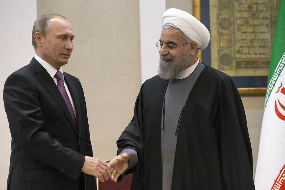 Russian President Vladimir Putin, shown above shaking hands with Iranian President Hassan Rouhani, has shown a willingness to exploit weakness and indecision in the West. (AP)
