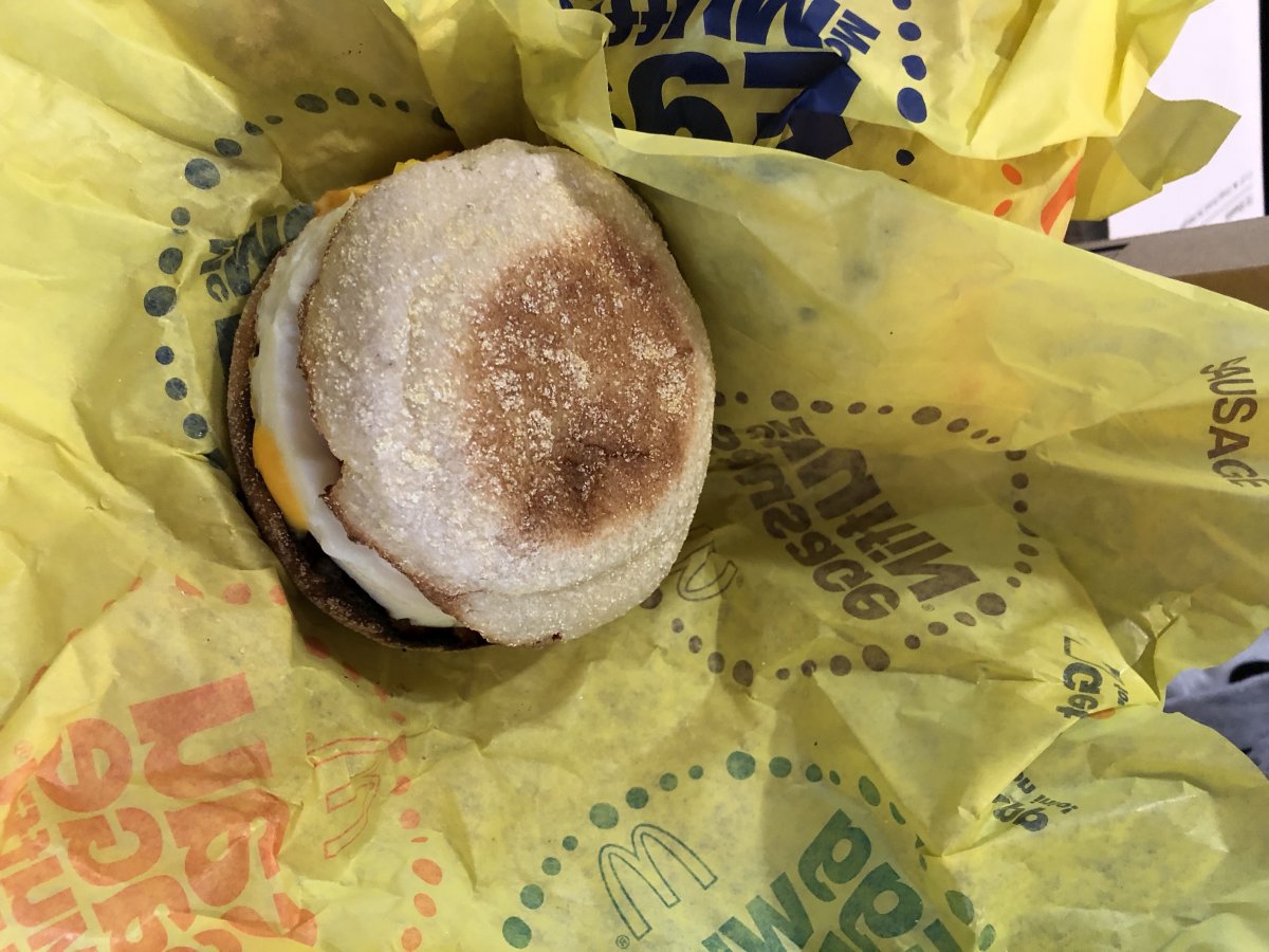 Day 4. It’s Monday, and I’m back on the Egg McMuffin grind. I’m really beginning to loathe these things.