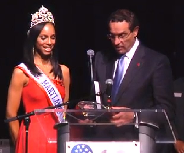 Raquel Riley Thomas accepts an award from the group Women Vets Rock. Presenting the award is DC Mayor Vincent Gray. (Click to see video.) |