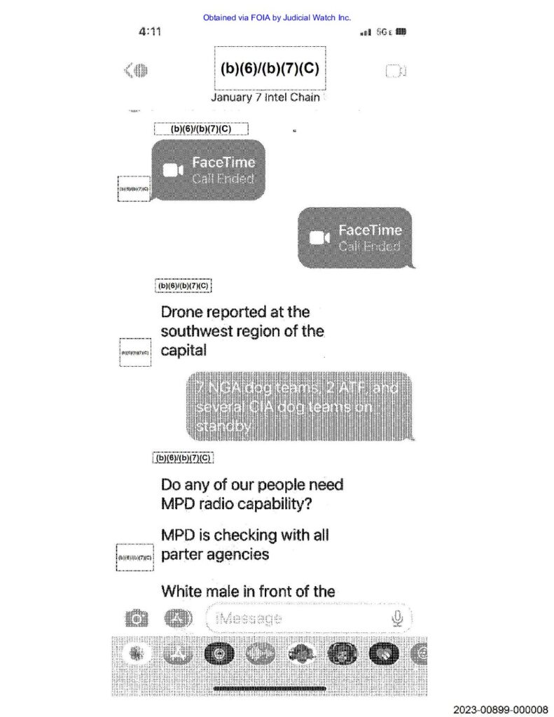 Judicial Watch said the Bureau of Alcohol, Tobacco, Firearms, and Explosives provided a series of text messages under the heading “January 7 Intel Chain,” in which two separate references to participation by the CIA were made. One said that “two CIA bomb techs” are assisting with “a pipe bomb scene on New Jersey and D ST SE.” Another referenced “several CIA dog teams on standby.”