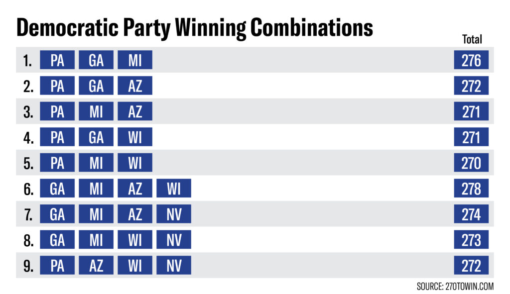 “Michigan, Wisconsin, and Pennsylvania may be enough for Biden, but he literally has no room for error,” he said.