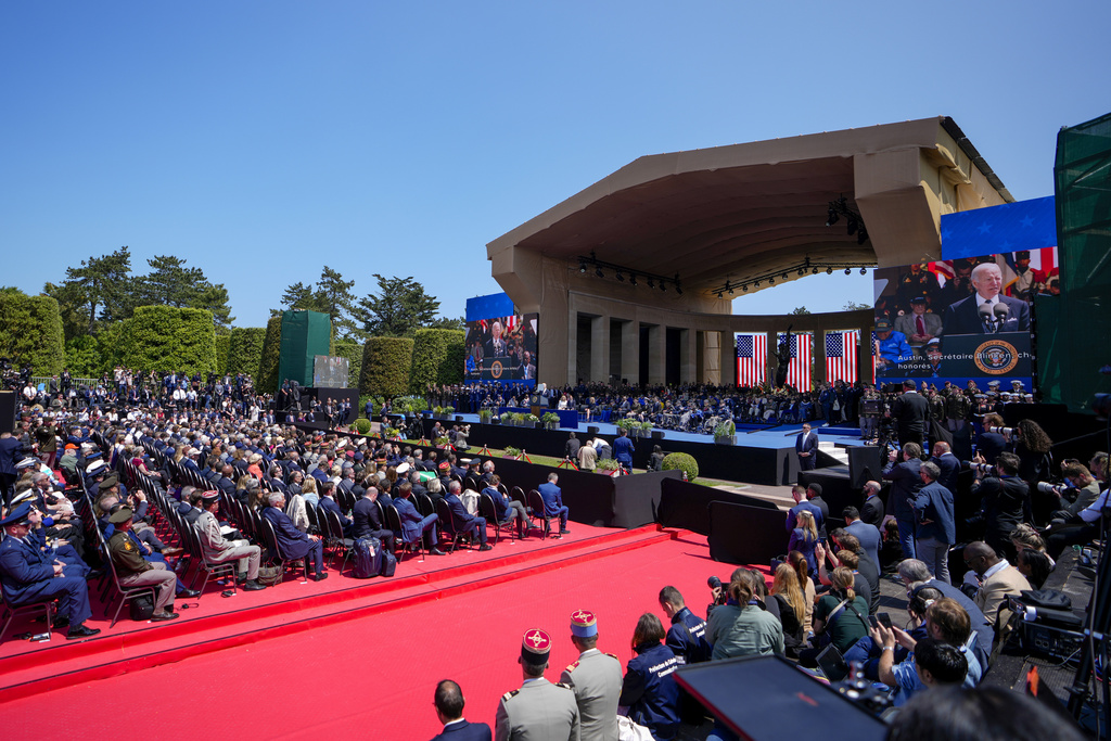 “Isolationism was not the answer 80 years ago, and it is not the answer today,” Biden said. “To surrender to bullies, to bow down to dictators, is simply unthinkable. Were we to do that, it means we would be forgetting what happened here on these hallowed beaches. Make no mistake: We will not bow down. We will not forget.”