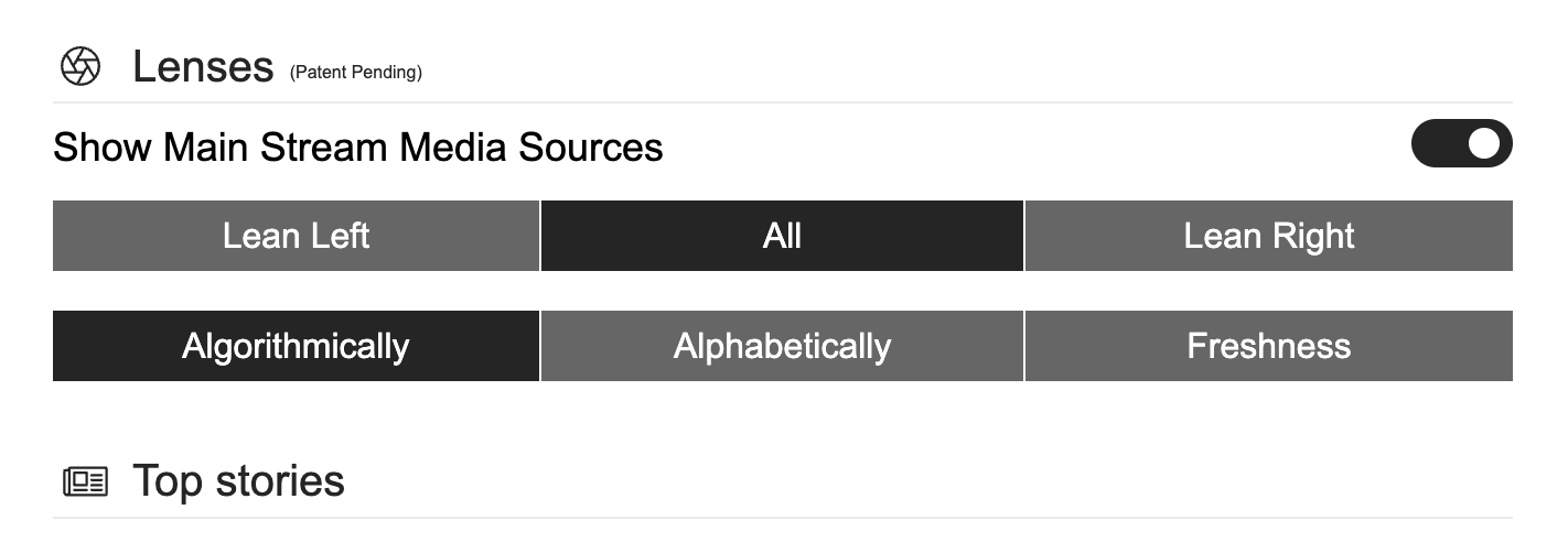 “You’ll have the option to only view sources through the left lens. That means you can only see sources that lean left. You can decide to only see sources through the right lens, which means only sources that lean right. Or, you don’t have to do that,” she said.