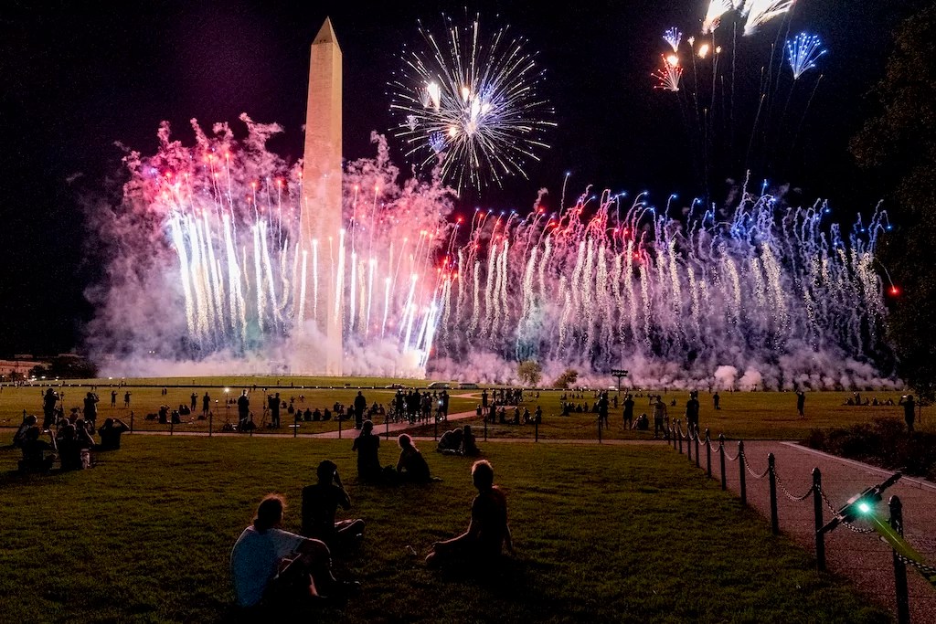 Alongside the using the White House as the backdrop for accepting the Republican nomination, a fireworks display — complete with “Trump 2020” being spelled out — lit up the sky over the national mall.