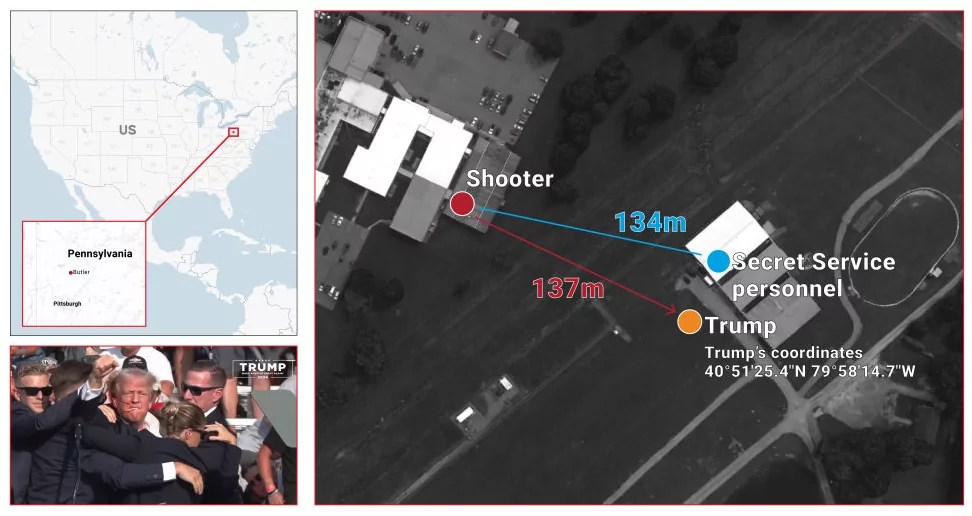 Crooks, of Bethel Park, Pennsylvania, was killed by security moments after he was able to fire off several shots at the Trump rally in Butler. Extraordinary footage obtained by TMZ appears to show Butler lying on his belly and firing shots before being taken out. Similar footage is circulating of the moment a Secret Service sniper reacted to the shots and returned fire. Crooks was able to fire at the rally stage from less than 500 feet away. An eye witness, who said he tried to flag to local officials that there was a suspicious individual, said the Secret Service “blew his head off” when they returned fire.