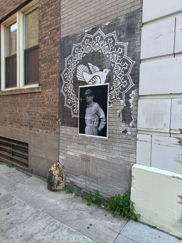 In one poster, Trump’s head appears superimposed on the photo of a World War II-era general.