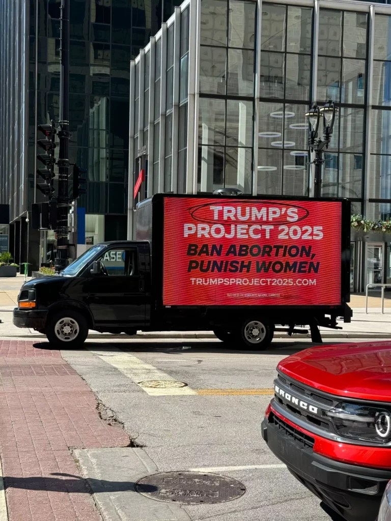 Another truck claimed that Trump would ban access to abortion. He has shied away from a national ban, instead urging Republicans to allow states to determine limits on the procedure.
