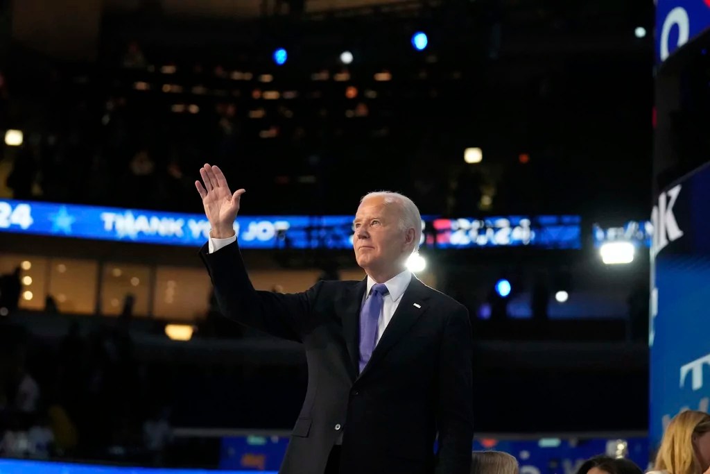 Biden’s convention swan song was a 50-minute address that hit familiar notes about the importance of democracy and the potency of his partnership with Harris, with the vice president watching on in the United Center and joining him onstage with his family at his speech’s conclusion.