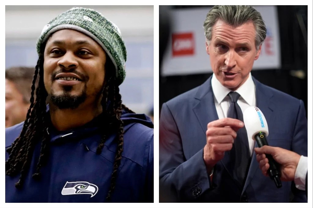 “The bottom line, Marshawn, is your favorable and unfavorable [ratings] put you in a position against anyone else they polled in the field, which is some of the biggest names in California politics from East Bay,” Newsom said.