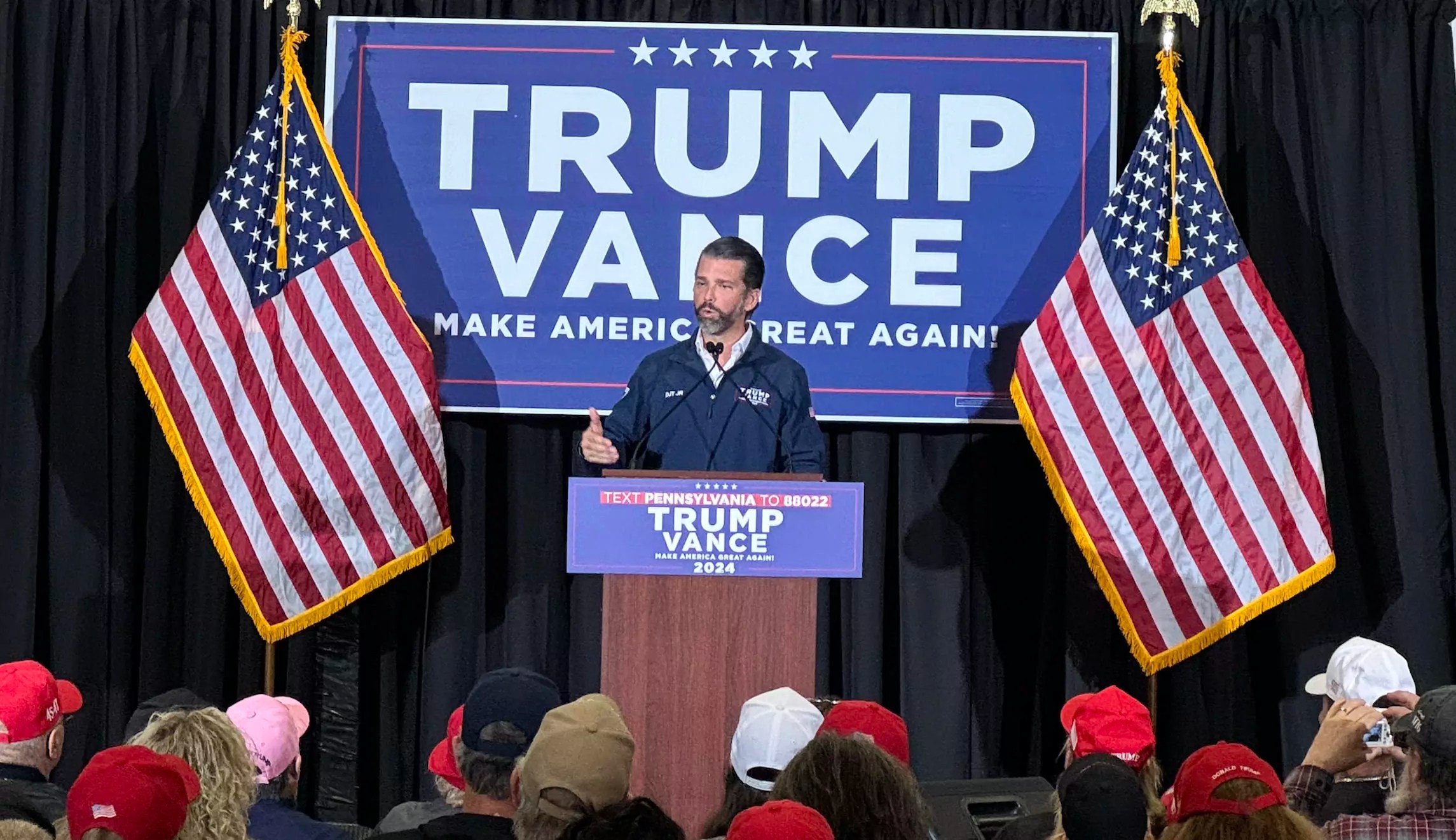 The emphasis is natural for Donald Trump Jr., an avid hunter who barnstormed Pennsylvania on behalf of his father Monday.