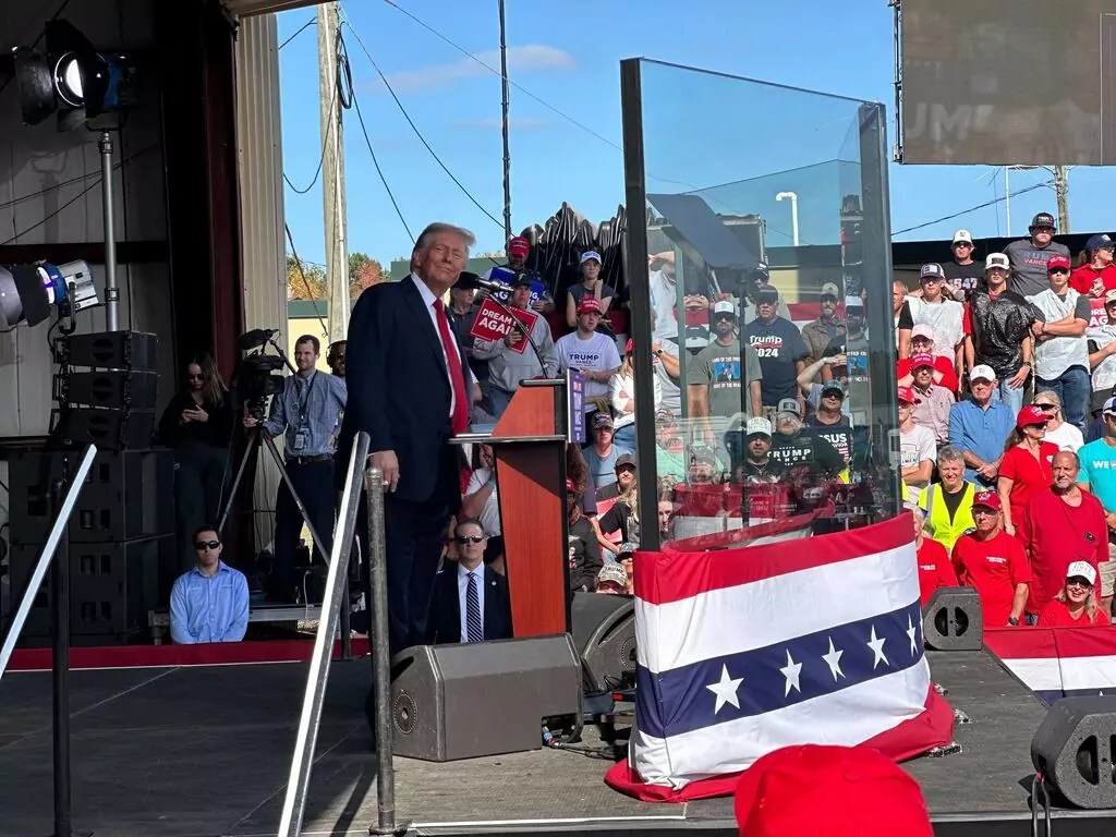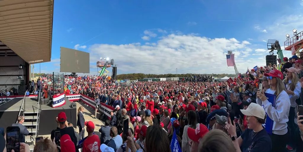 In his first of three Saturday rallies, former President Donald Trump addressed an electric crowd in Gastonia, North Carolina, with many attendees sporting garbage bags and construction vests to show support after President Joe Biden referred to Trump supporters as “garbage” on Tuesday.