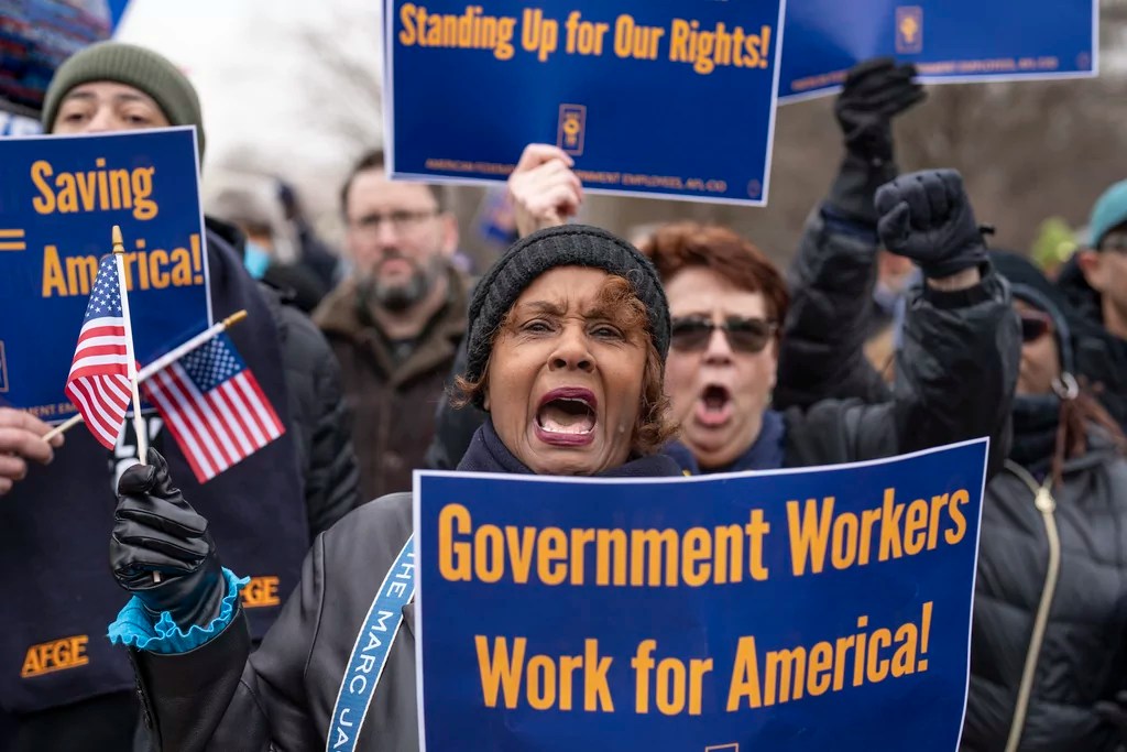 Hundreds of people gathered on Capitol Hill on Tuesday afternoon to protest against the Trump administration’s policies targeting the federal workforce.