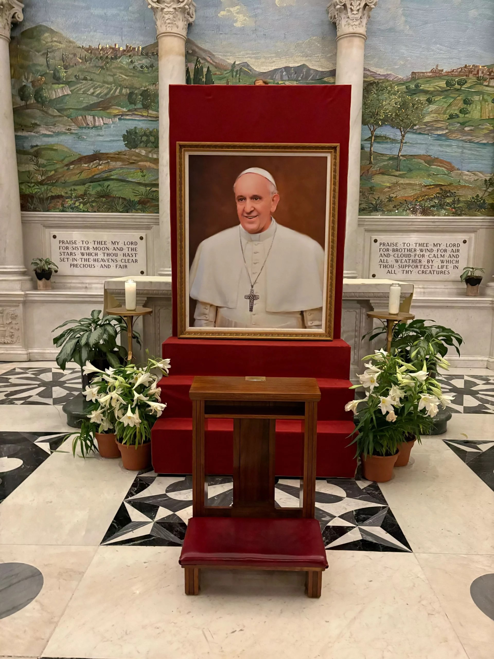 At noon on Monday, the national shrine rang its bells 88 times, one for each year of Francis’s life. At the conclusion at 12:10 p.m., a special mass was held in the church crypt.