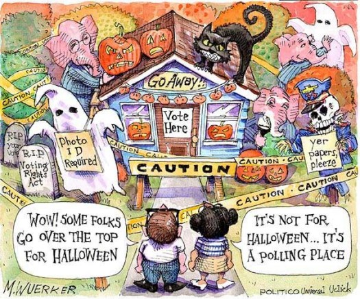 In November 2014, Politico’s Matt Wuerker depicted Republicans lawmakers who support voter ID laws as Nazi SS officers. He denied later that he meant to do this.