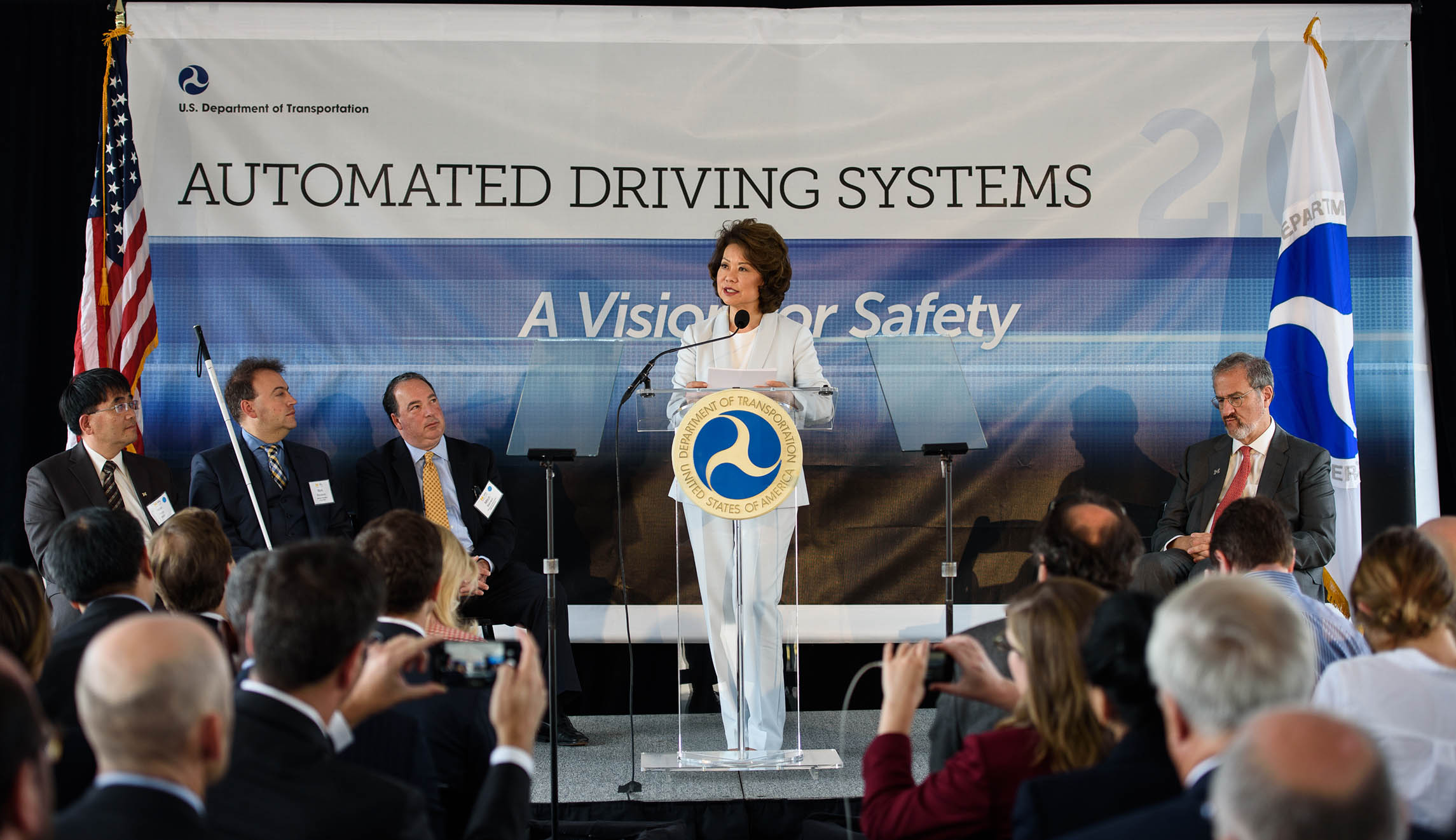 Chao: There are three goals. Three themes. One is safety, which is always number one. Number two, the president wants to have an infrastructure proposal, 16 different agencies have been working together for the last few months on an infrastructure proposal that we hope will be available to be unveiled later on this fall. The principles were unveiled around middle of May. We are now filling in the principles, working on legislative text language, so we hope to have that out by the latter part of the fall. And then thirdly, the third theme or goal is to look to the future, which is why I am here today in MCity in Michigan. To talk about autonomous vehicles and automated driving systems and what that means for us, for our country. And for so many swaths of our population that hitherto have not had mobility freedom. Autonomous vehicles and automated driving systems can give freedom to the elderly and to the disabled. So it had great potential. We’re giving them their freedom back. It’s very powerful.