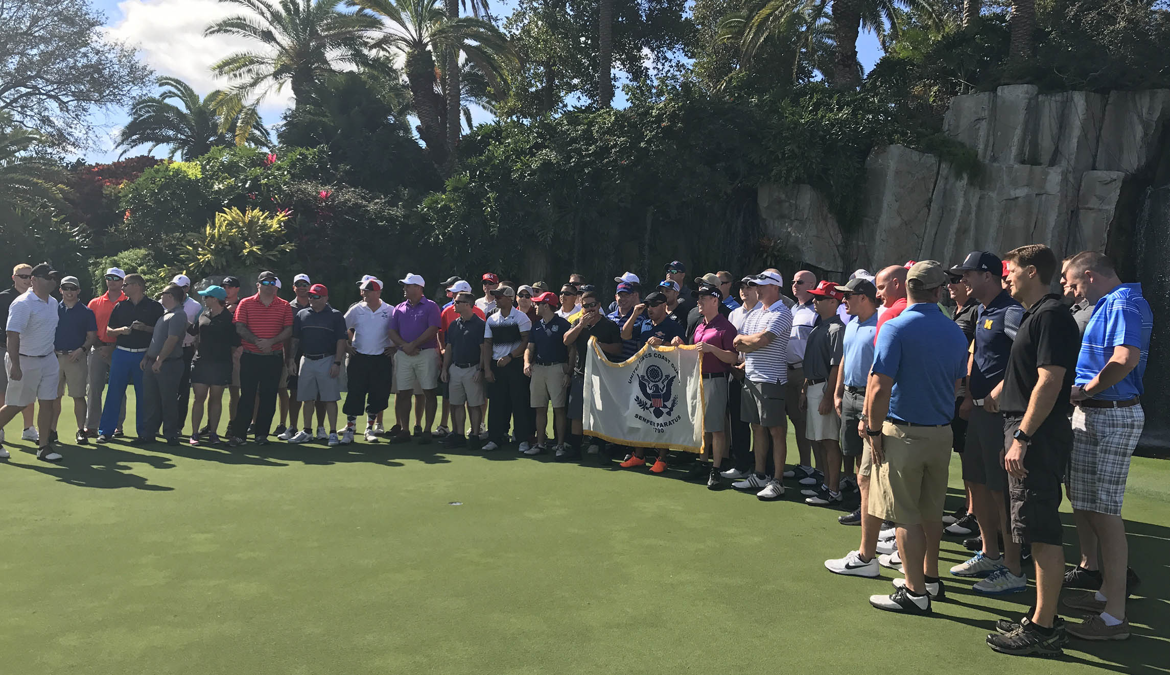 The president and 60 service members from Coast Guard Station Lake Worth Inlet in Riviera Beach, Fla., and elsewhere around the country will participate in a four-man scramble at the Trump International Golf Club in West Palm Beach.