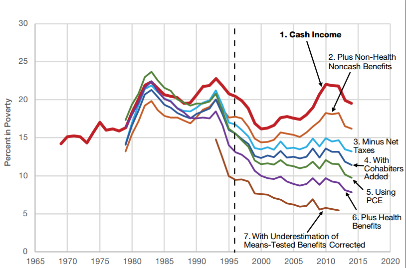 Among the bigger adjustments are the use of a different inflation gauge to measure the poverty line and count the income of cohabitating couples.