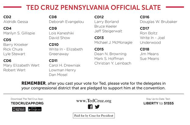 Of the 41 names on the slate, 31 won. With at least eight others winning who have said they will support the winner of the congressional district, that brings his total to 39 unbound delegates who will likely support him at least on the first ballot. The real estate mogul also won every one Pennsylvania’s 67 counties.