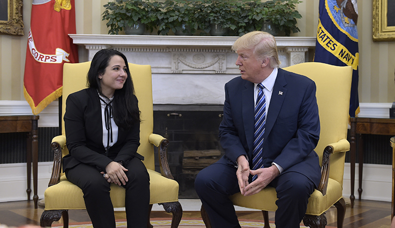 A smiling Hijazi visited the president at the White House after her release last week.
