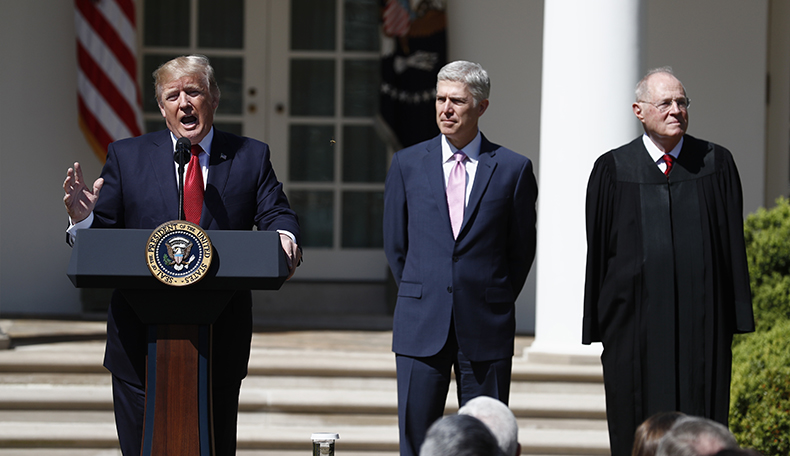 “Well, I think that the Supreme Court is very important,” he explains, “because every 5-to-4 decision is because of me. And that could go on for 40 years,” since his first appointment to the court, Associate Justice Neil Gorsuch, “is a young man” at age 49.