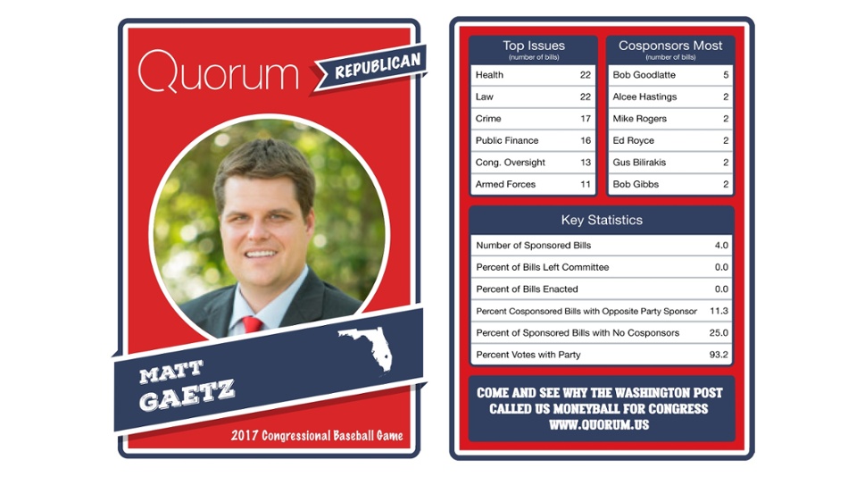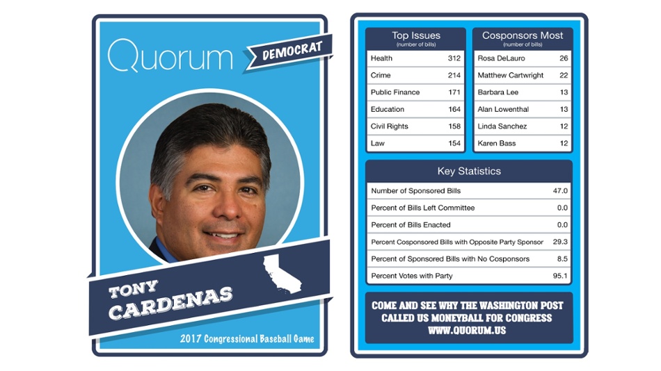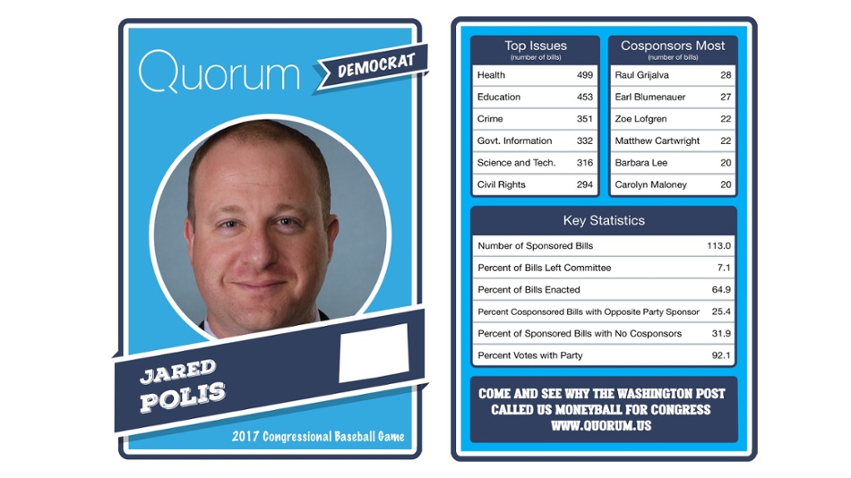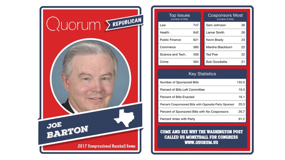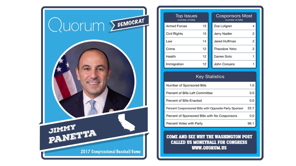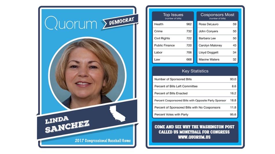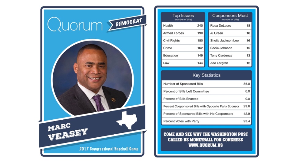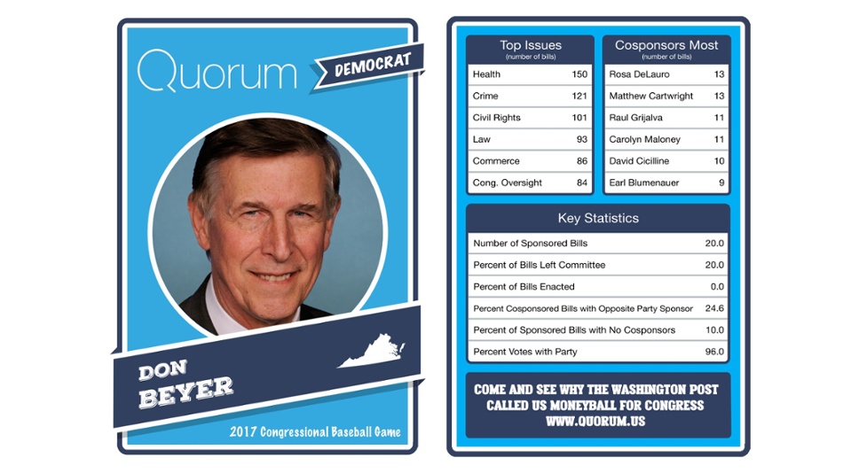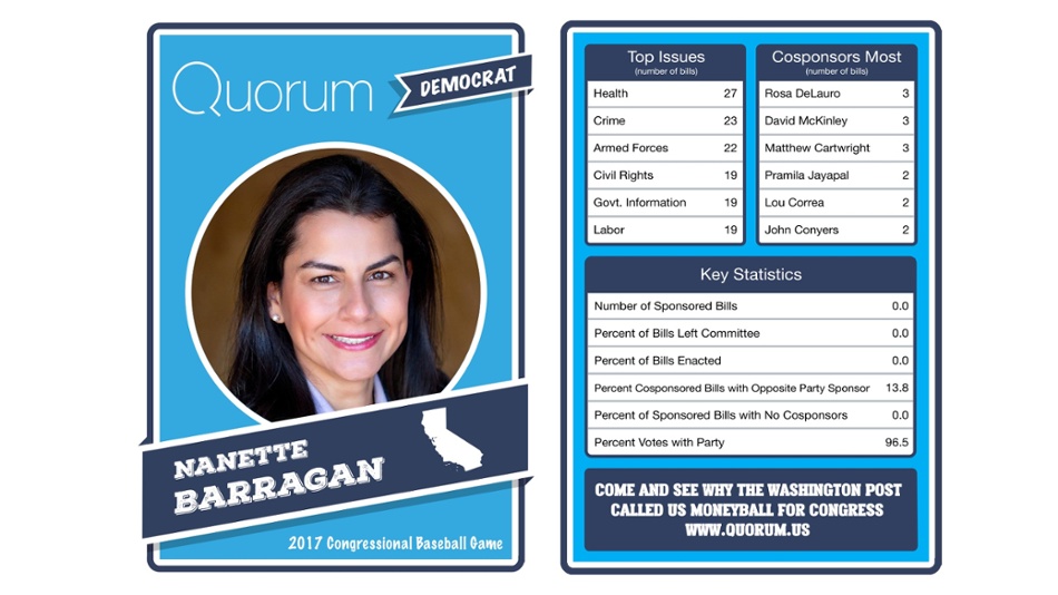 The data trackers at Quorum have legislative stats for each member before the Democrats and Republicans face off at Nationals Park.