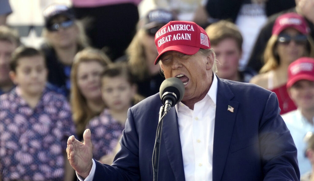 Republican presidential candidate Donald Trump speaks at a Buckeye Values PAC rally on Saturday, March 16, 2024, in Vandalia, Ohio. (AP Photo/Meg Kinnard)
