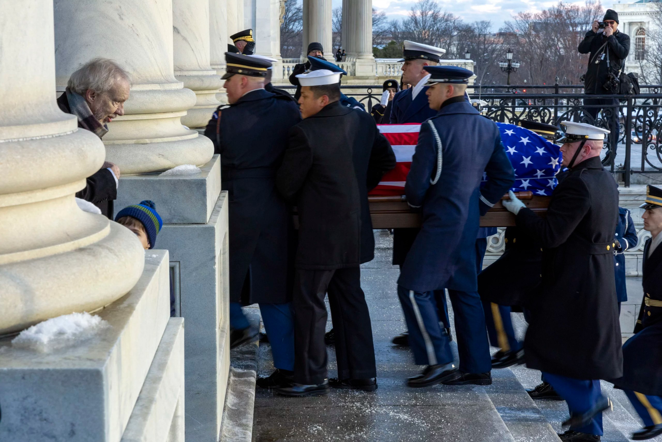 As Carter’s arrival ceremony at the Capitol concluded, the U.S. Army band played Ray Charles’s “Georgia on My Mind.” Thousands are expected to gather at the Capitol to honor the 39th president. His casket has now been placed on the same catafalque as Abraham Lincoln after his assassination in 1865. The public will be able to pay their respects from 7 p.m. to midnight Tuesday and all day on Wednesday.
