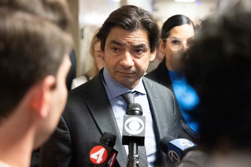 District Attorney Brooke Jenkins makes remarks at the Hall of Justice during the murder trial of Nima Momeni on Tuesday, Dec. 17, 2024, in San Francisco. (AP Photo/Benjamin Fanjoy)