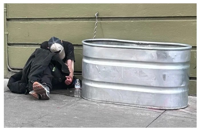 In recent years, the city’s public health department has encouraged people who do hard drugs such as methamphetamine, heroin, and fentanyl to find a friend so they won’t be alone if they overdose. The city has programs in place that pass out clean needles, with a syringe access program operating seven days a week. It also hands out Narcan, which reverses an opioid overdose by blocking the effects of the opiate on the brain and by restoring breathing. They also pass out foil and offer free pipes. It is an everyday occurrence to see people shooting up, walking around with needles stuck in them, or bent over in the fentanyl haze.