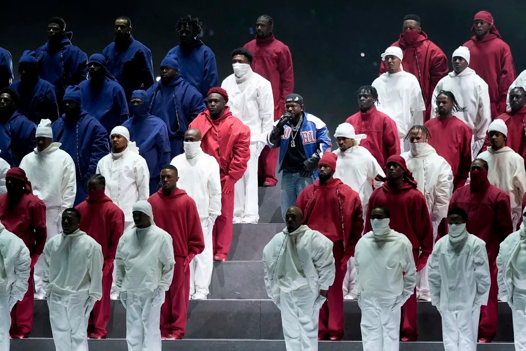 Kendrick Lamar performs during halftime of the NFL Super Bowl 59 football game between the Kansas City Chiefs and the Philadelphia Eagles, Sunday, Feb. 9, 2025, in New Orleans. (AP Photo/Matt Slocum)