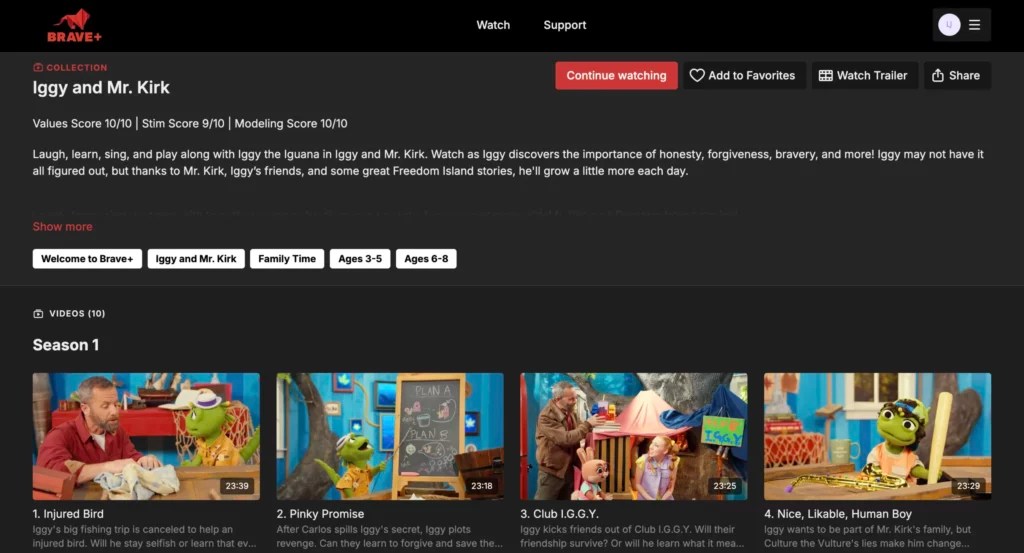 The platform launched through the BRAVE+ app on March 27, debuting Kirk Cameron’s latest children’s show, Iggy and Mr. Kirk. The new show features Cameron and several friends, including an iguana named Iggy, as they explore lessons found in his Freedom Island children’s books published through BRAVE Books.