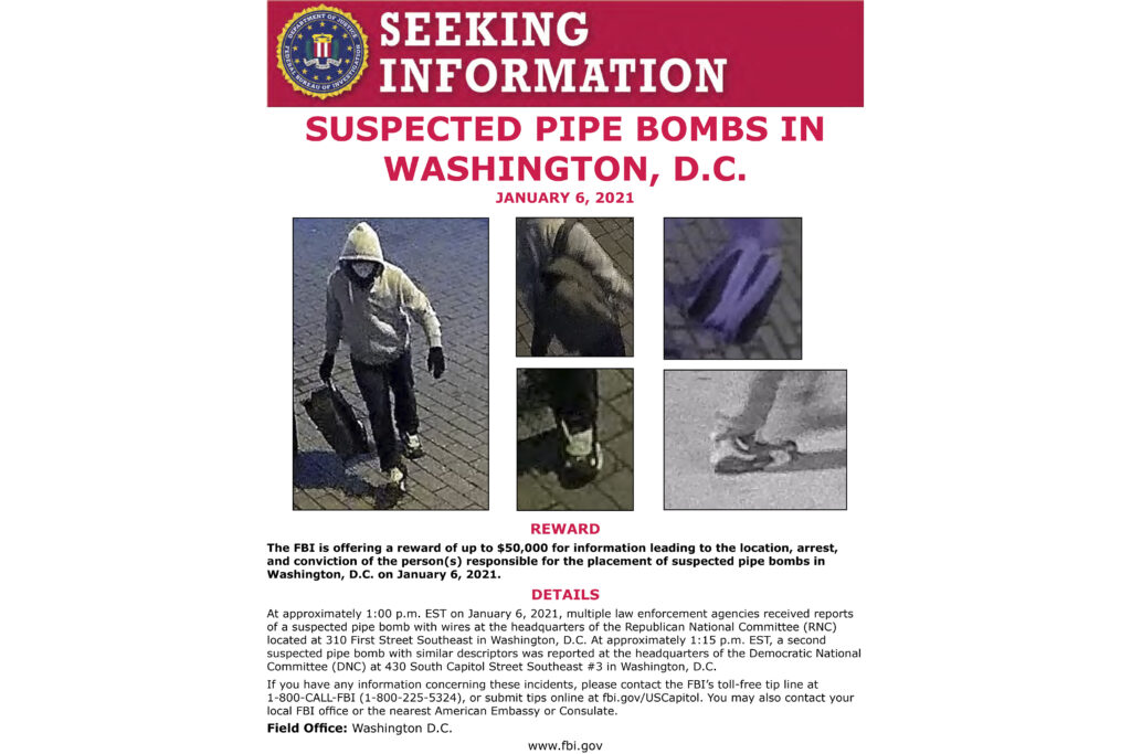 “We now know based on video surveillance that both devices appear to have been placed the night before, on January 5, 2021,” Gallagher said in prepared remarks. “While there is vague footage of the suspect, to date, no one has been arrested for the offense despite a $500,000 reward and many hours of hard work by the FBI and other law enforcement agencies.”