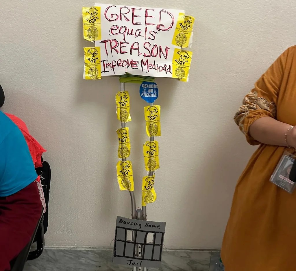 The senators left the hearing shortly after 2:45 p.m. and met with protesters. Protesters had been seen waving signs that said variations of the phrases “hands off Medicaid,” “no cuts to Medicaid,” and “don’t cut Medicaid.”