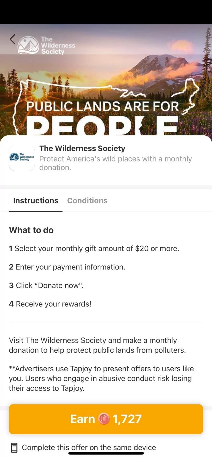 The partnership between the Wilderness Society and BabelNovel is facilitated by a service called Tapjoy.